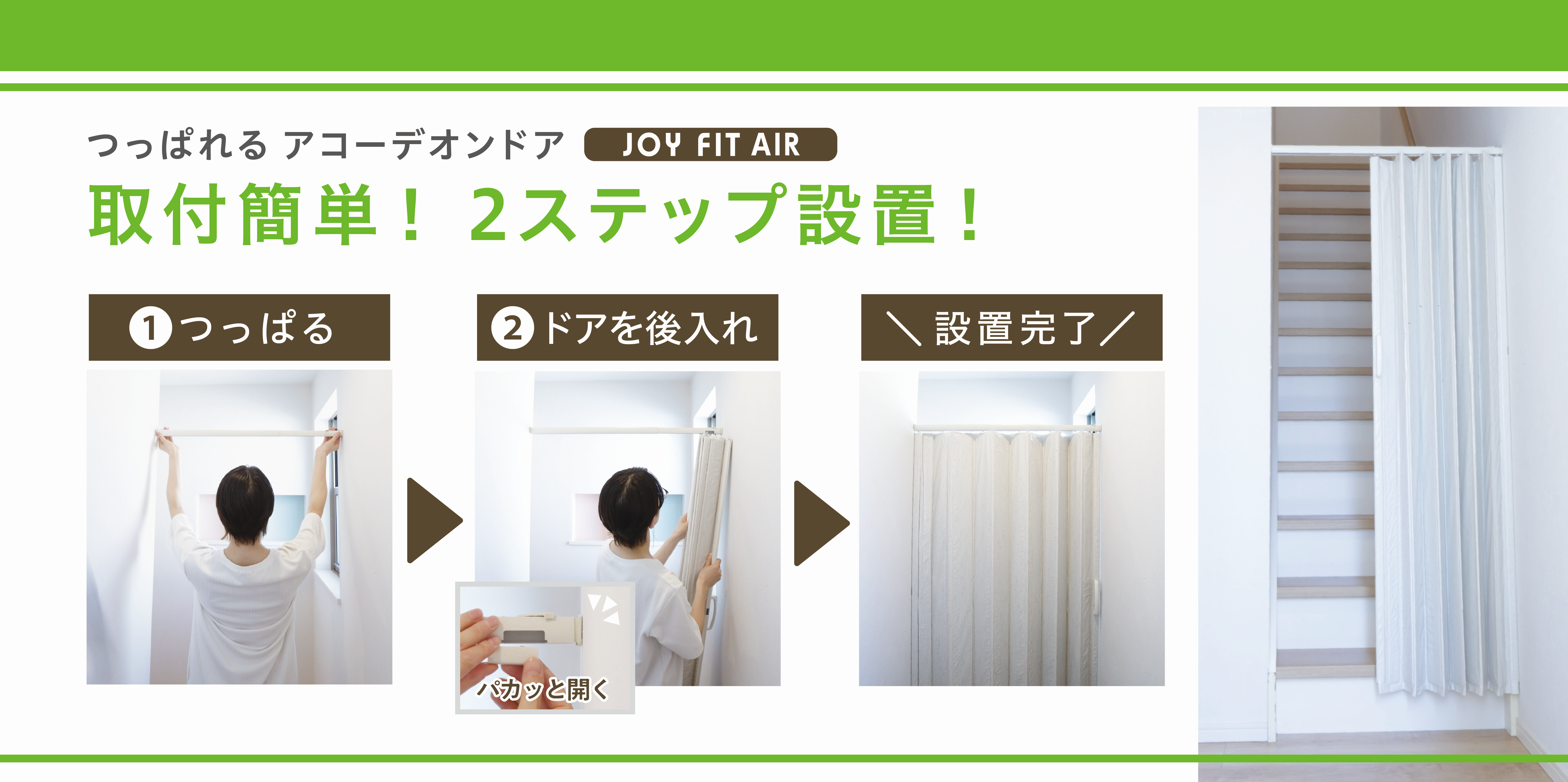 つっぱりタイプのアコーデオンドア。