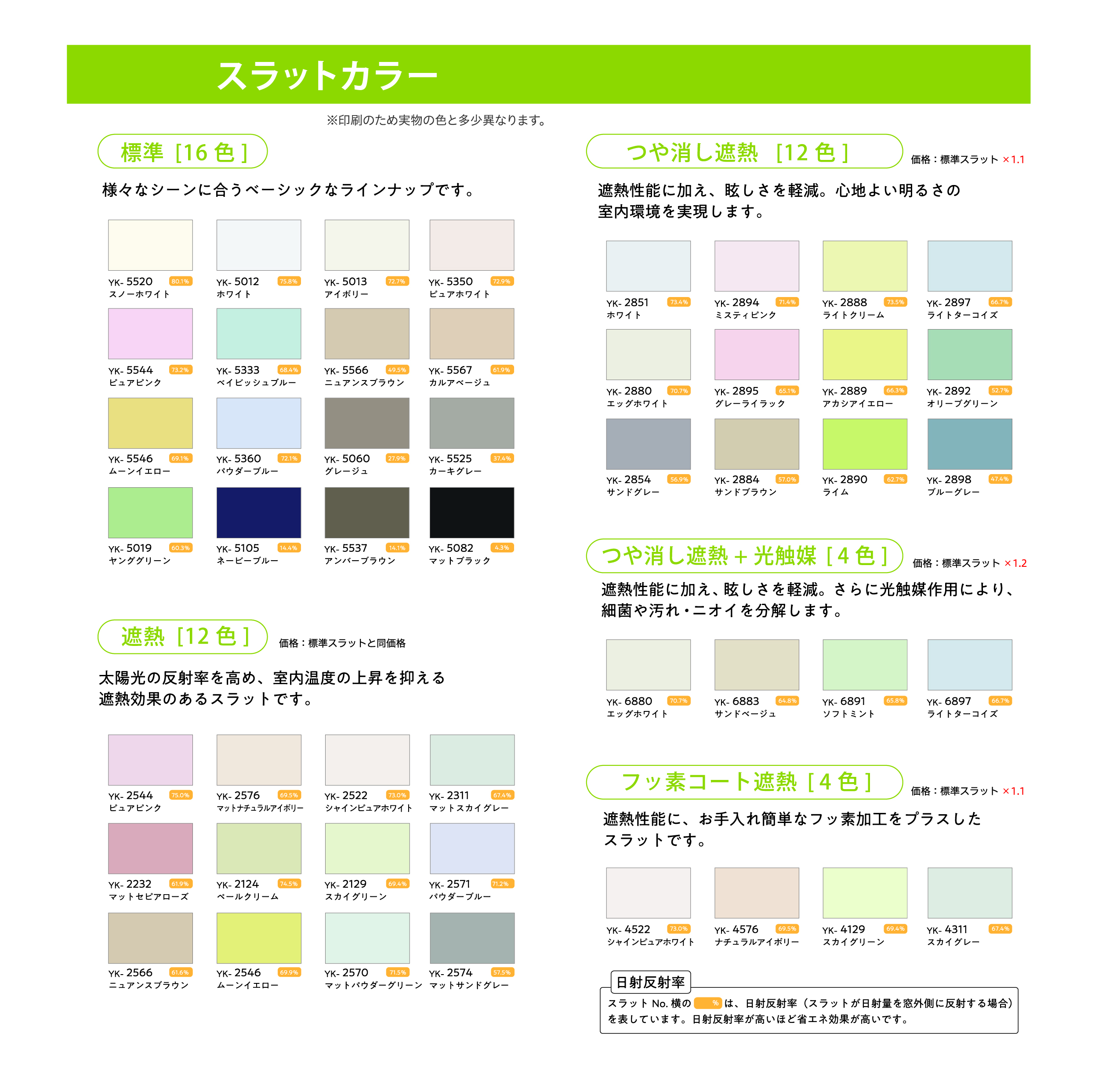 スラットに高い反射率をもつ塗料をコーティングした遮熱性の高いスラットを使用した商品(対応カラー 12色)