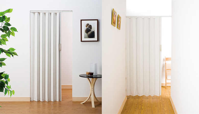 壁を傷つけずに取付けできるツッパリ式の アコーディオンドア
